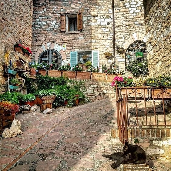 The sun sets and above Spello, on the slopes of Subasio, we can reach the castle of Collepino, from which we can enjoy a panoramic view of the Umbrian valley. Thanks to its position, it becomes the perfect place for those seeking a bit of fresh air, for those who love walking along the paths and, why not, for those who want to have, path or not, a snack in the village's colourful and flowery piazzetta.