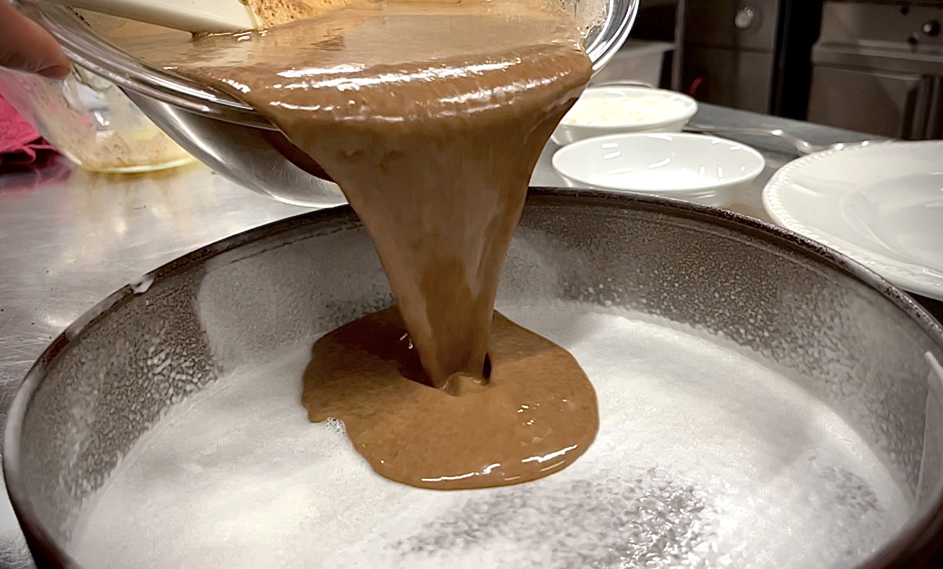 Pour the batter into a buttered, floured 24 cm baking pan;