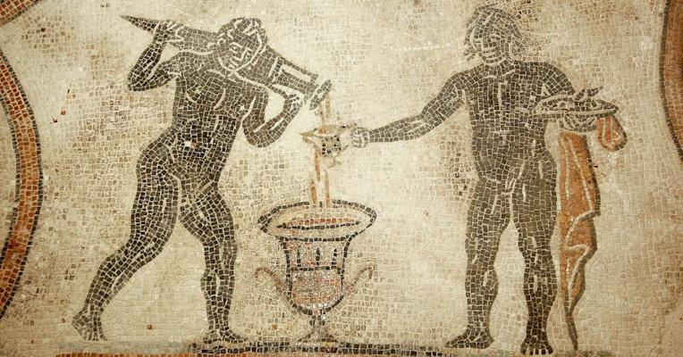 The Egyptians and Etruscans also used honey in funerary contexts, thus linking its long-lasting properties to the eternal life of the soul of the deceased. The Romans, on the other hand, had made honey a delicacy, so much so that it is mentioned in almost every recipe in the famous treatise on Roman cuisine written by Apicius. Among the best known is the famous mulsum wine, a spiced wine very dear to the Romans, consumed during banquets and libations. This was a very common scene in ancient art, which was also depicted in the extraordinary mosaics of Spello.