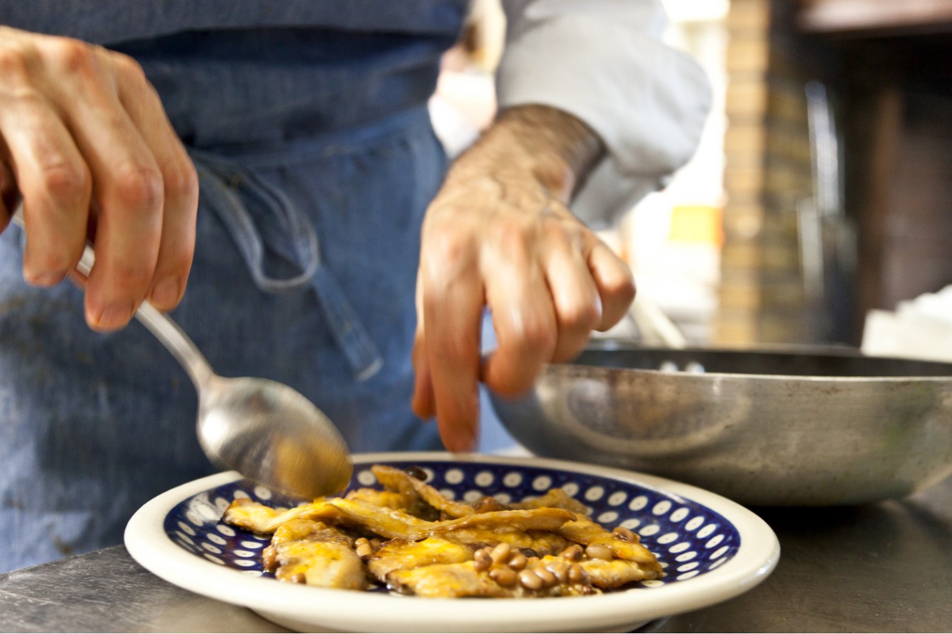 Pour the perch into the salad bowl and mix well with the Fagiolina del Trasimeno.